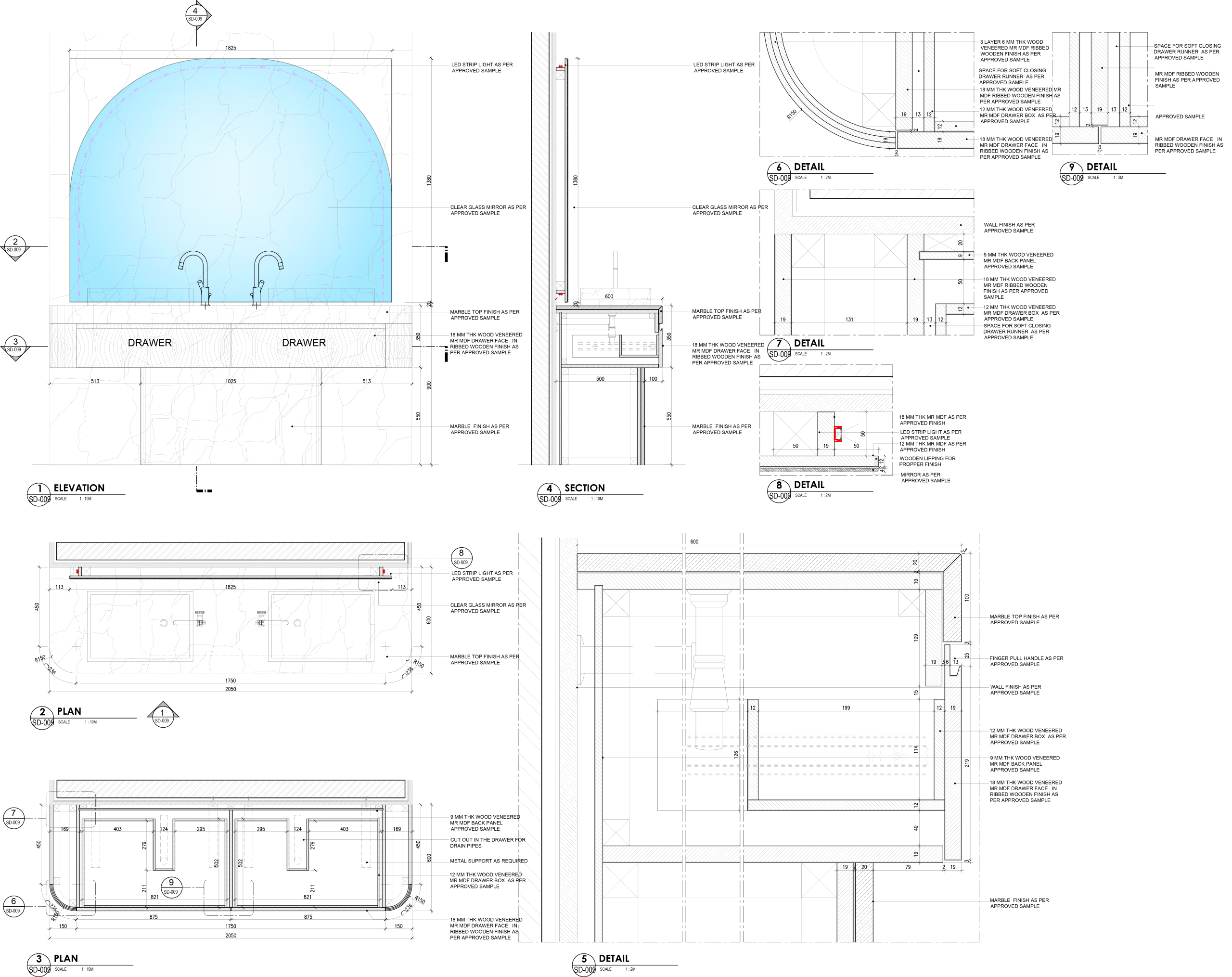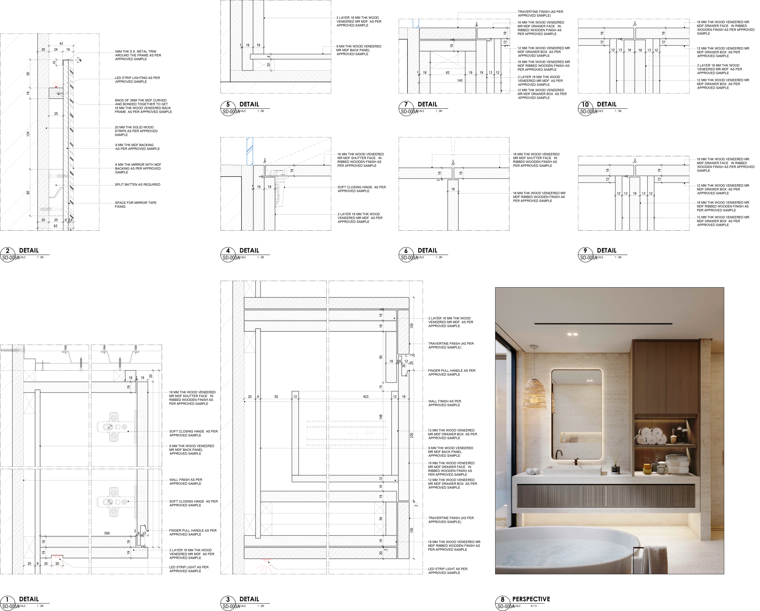 Material & Furniture Details: Annotated drawings specifying finishes, joinery details, and furnishing layouts for a cohesive outcome.