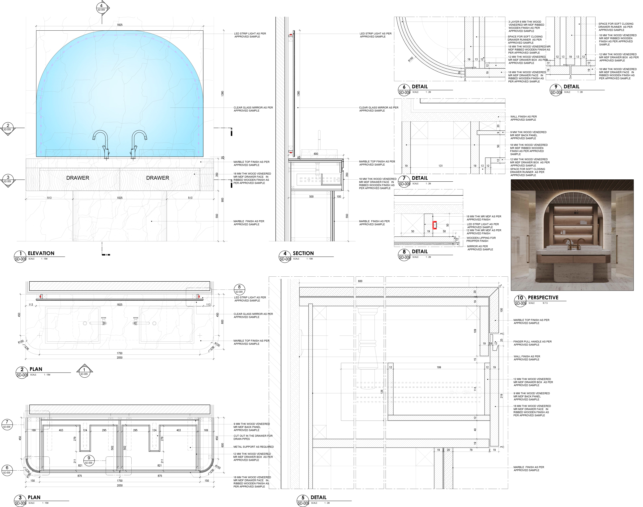 Technical Depth: Working drawings that balance design intent with practical considerations like services, lighting, and acoustics.