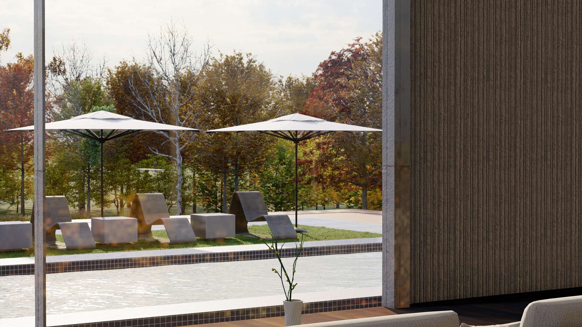 The design of the villa is inspired by the natural surroundings, with large windows that offer breathtaking views of the mountains and flood the living space with natural light. The use of natural materials such as wood and stone lends a warm and inviting feel to the space.
