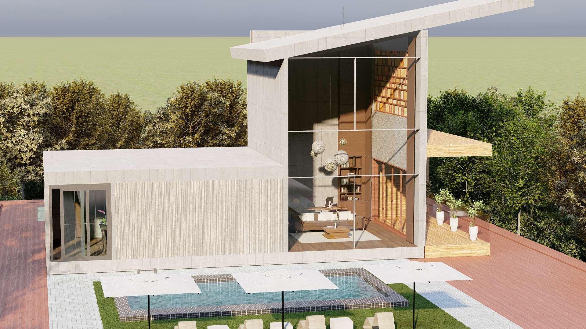 The villa features a spacious living area that doubles up as the bedroom, complete with a comfortable king-sized bed and plush furnishings. This open plan design allows for an unobstructed view of the mountains, creating a serene and calming environment for rest and relaxation. The villa is also equipped with a well-appointed kitchenette, perfect for preparing meals and snacks. The lack of a television in the villa ensures that guests remain focused and productive during their stay. The villa’s outdoor space features a stunning pool, perfect for a refreshing dip on a hot day. The outdoor seating area is ideal for enjoying the mountain scenery while sipping on a cup of coffee or reading a book.