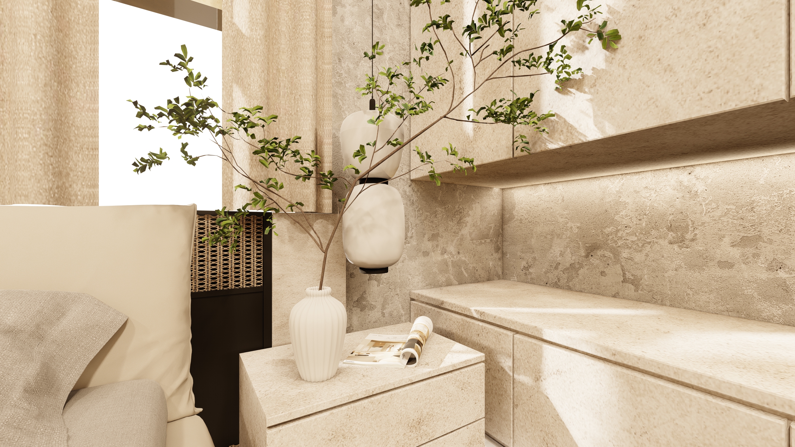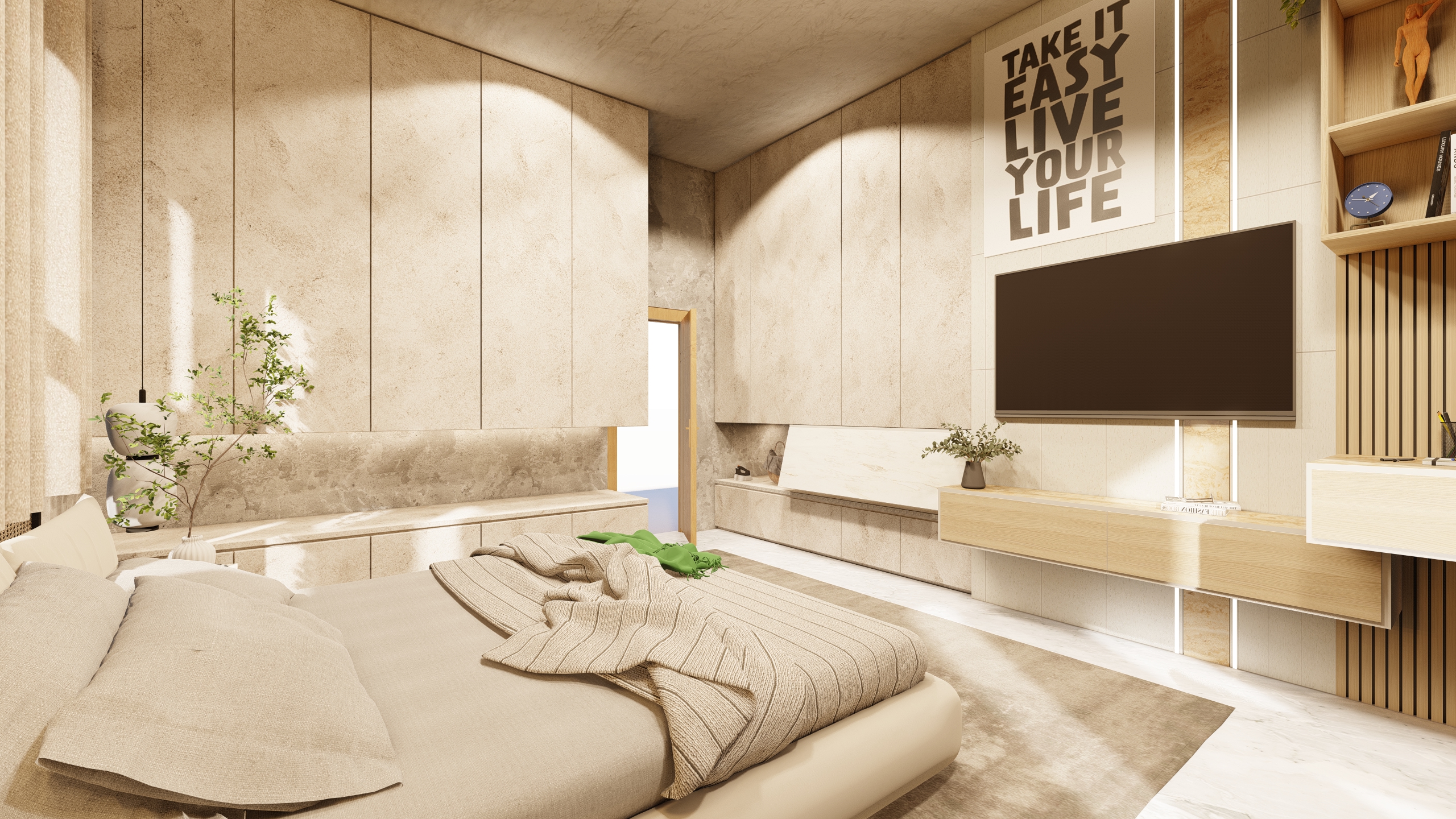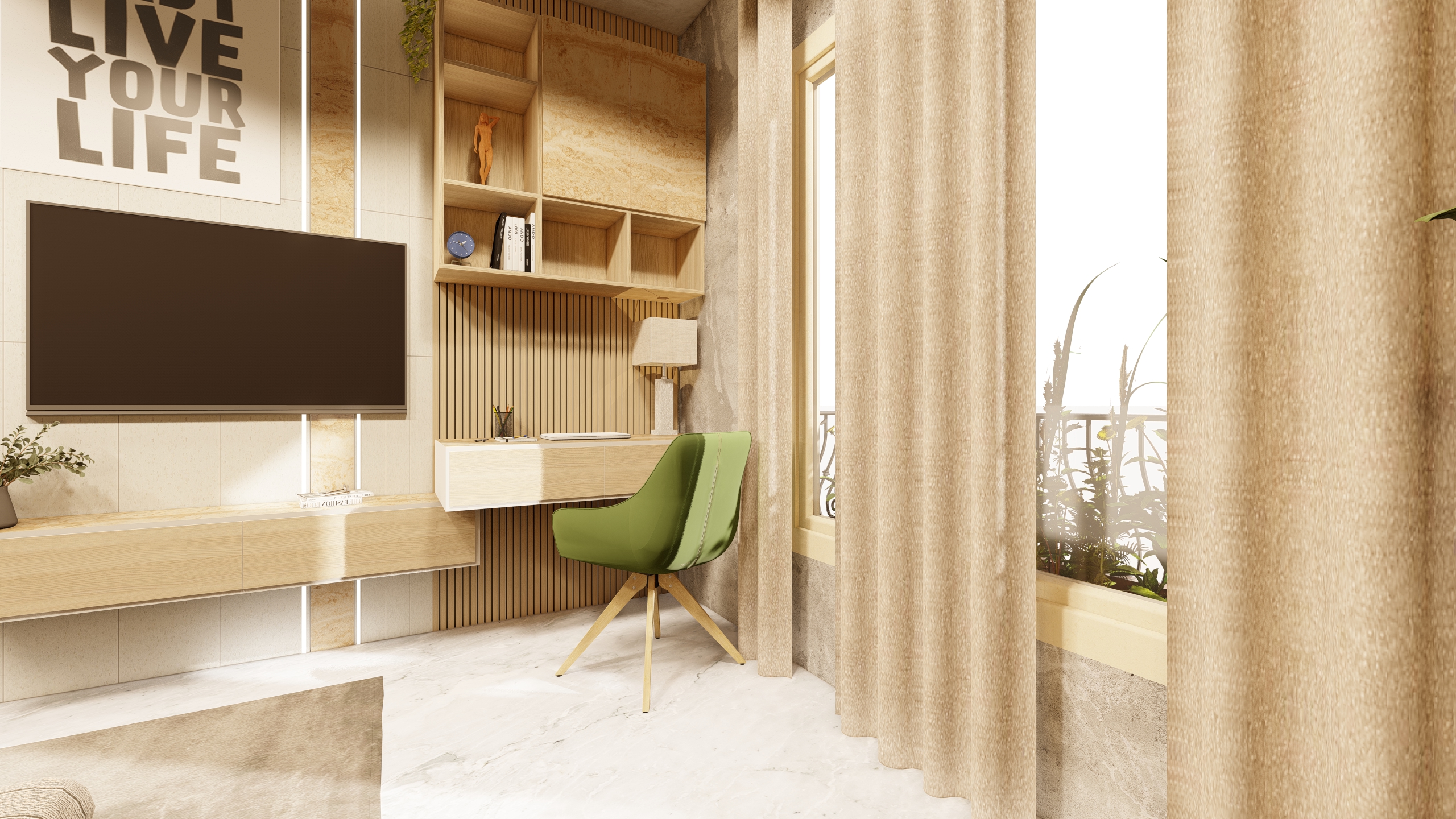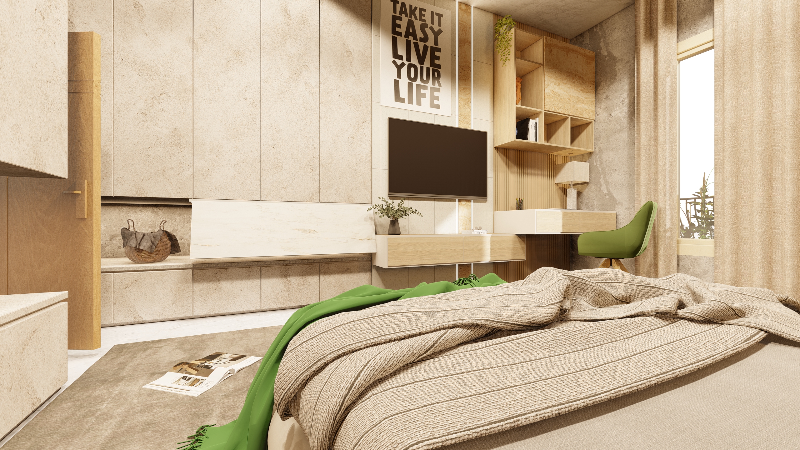 Verdant Haven exemplifies how a balanced combination of white and green, along with thoughtfully selected plants, can transform a bedroom into a peaceful sanctuary. The design promotes well-being and offers a refreshing escape from the hustle and bustle of daily life.