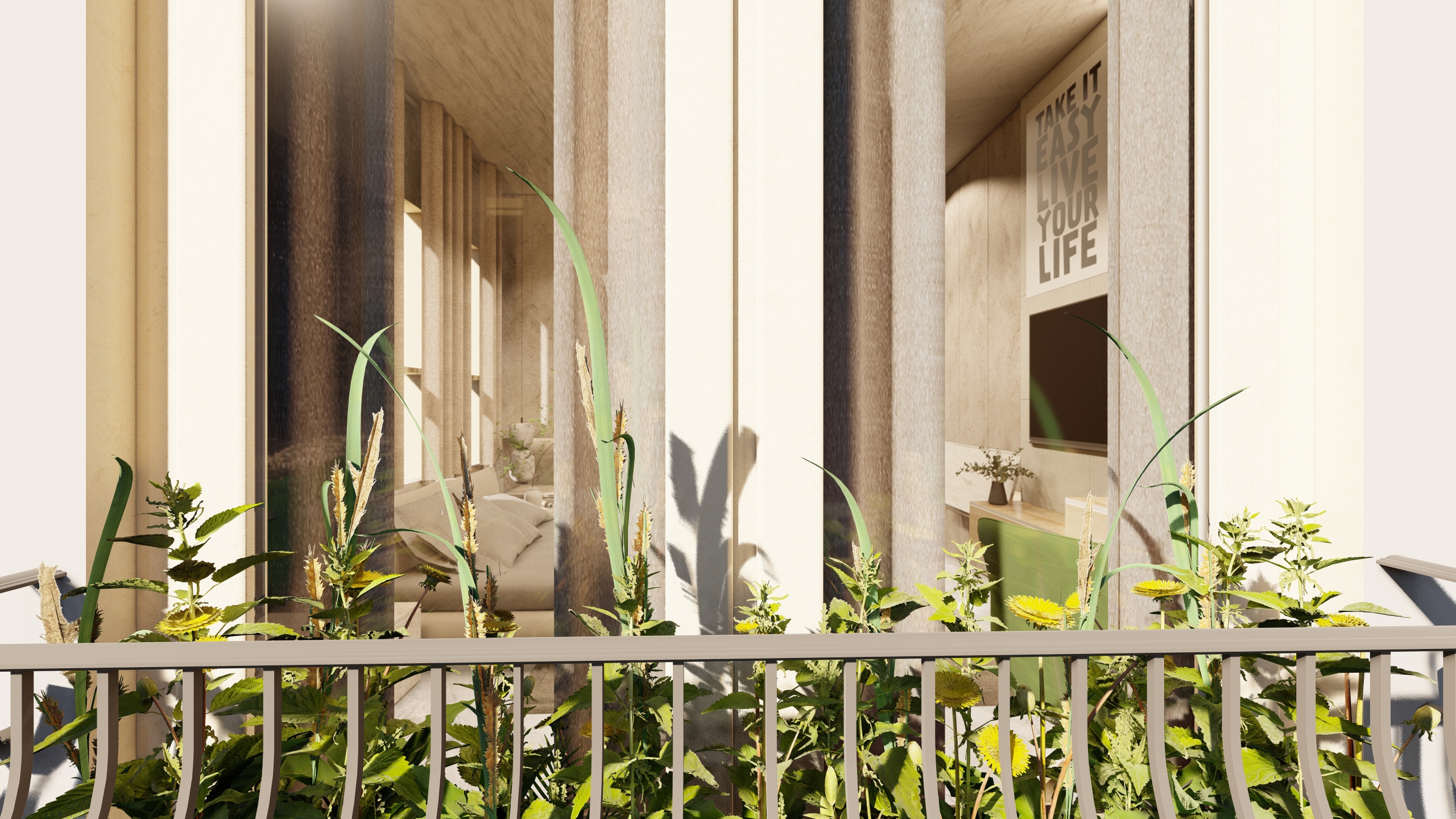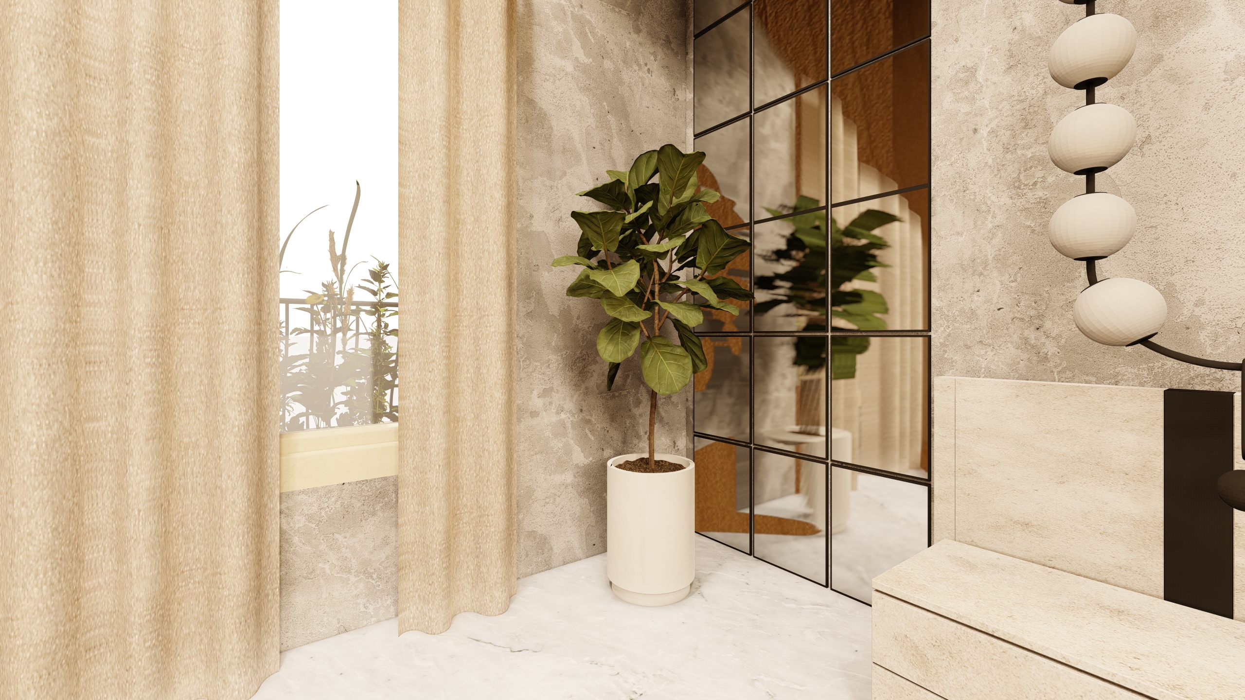 Indoor Plant Gallery: A curated selection of indoor plants, including varieties like Monstera, ZZ Plant, and Jade Plant, adds vibrancy and purifies the air, reinforcing the connection to nature. These plants are strategically placed to create a harmonious and inviting atmosphere.
